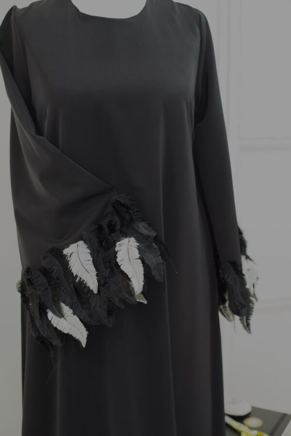 Elegantna duga crna haljina sa 3D aplikacijama na rukavima
